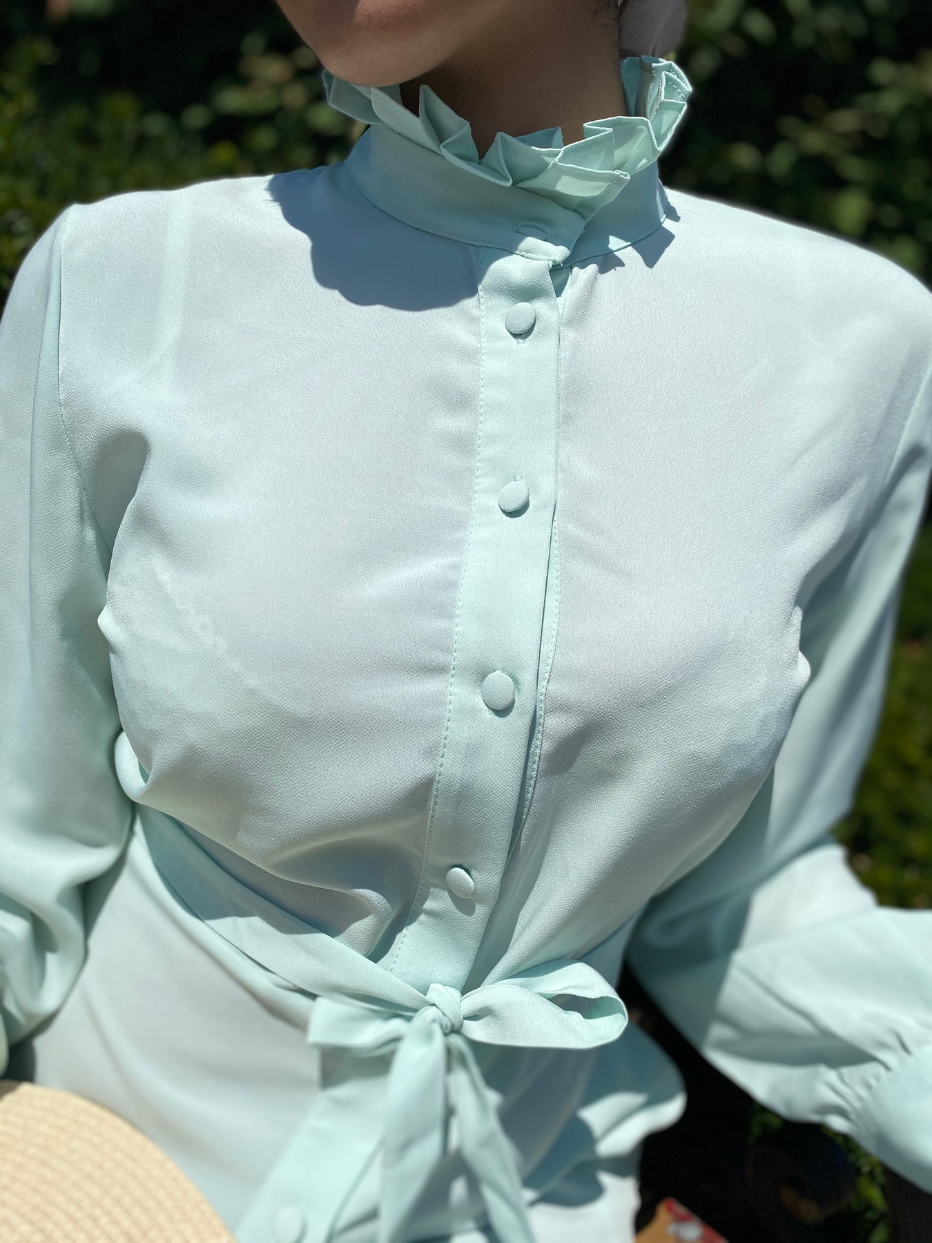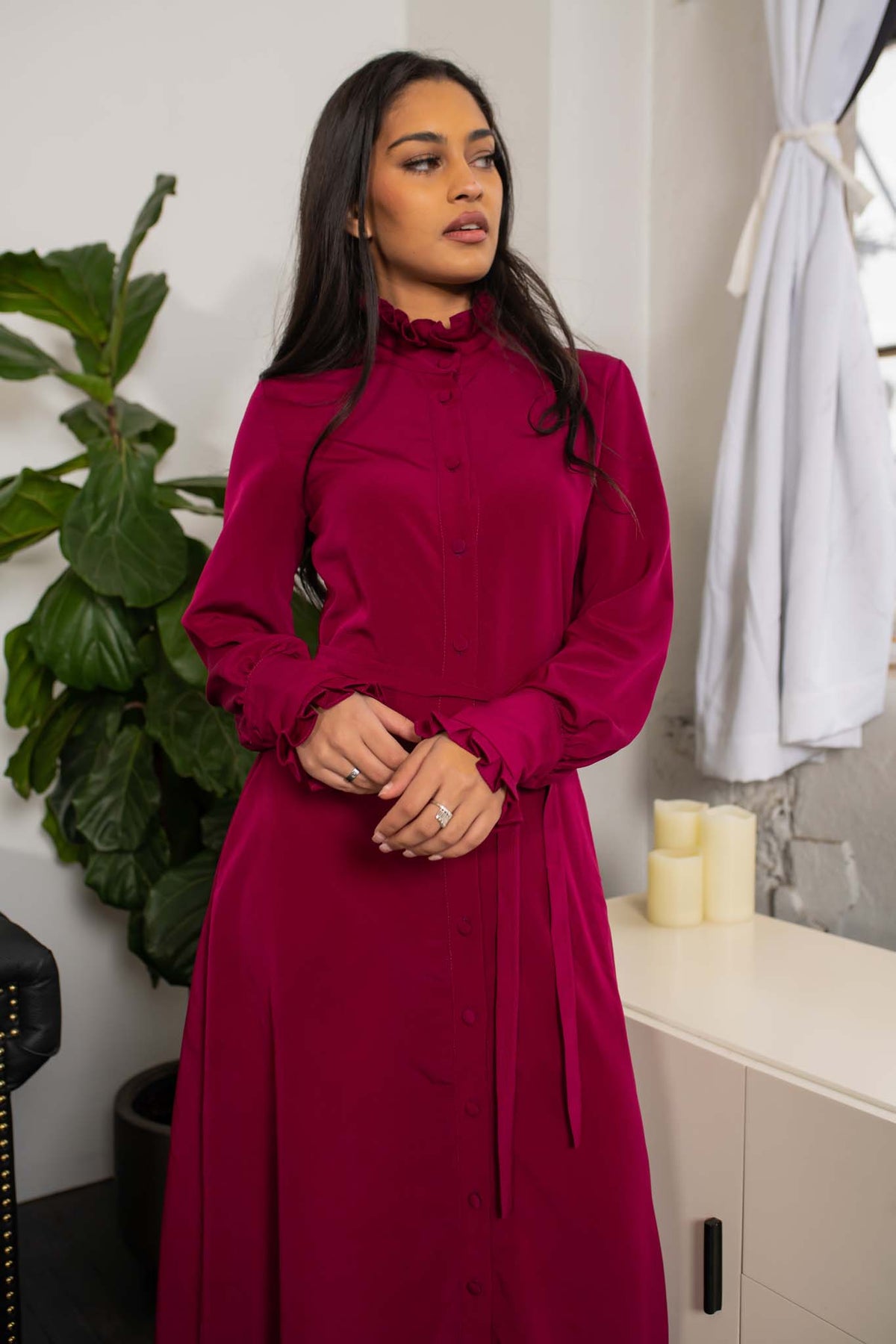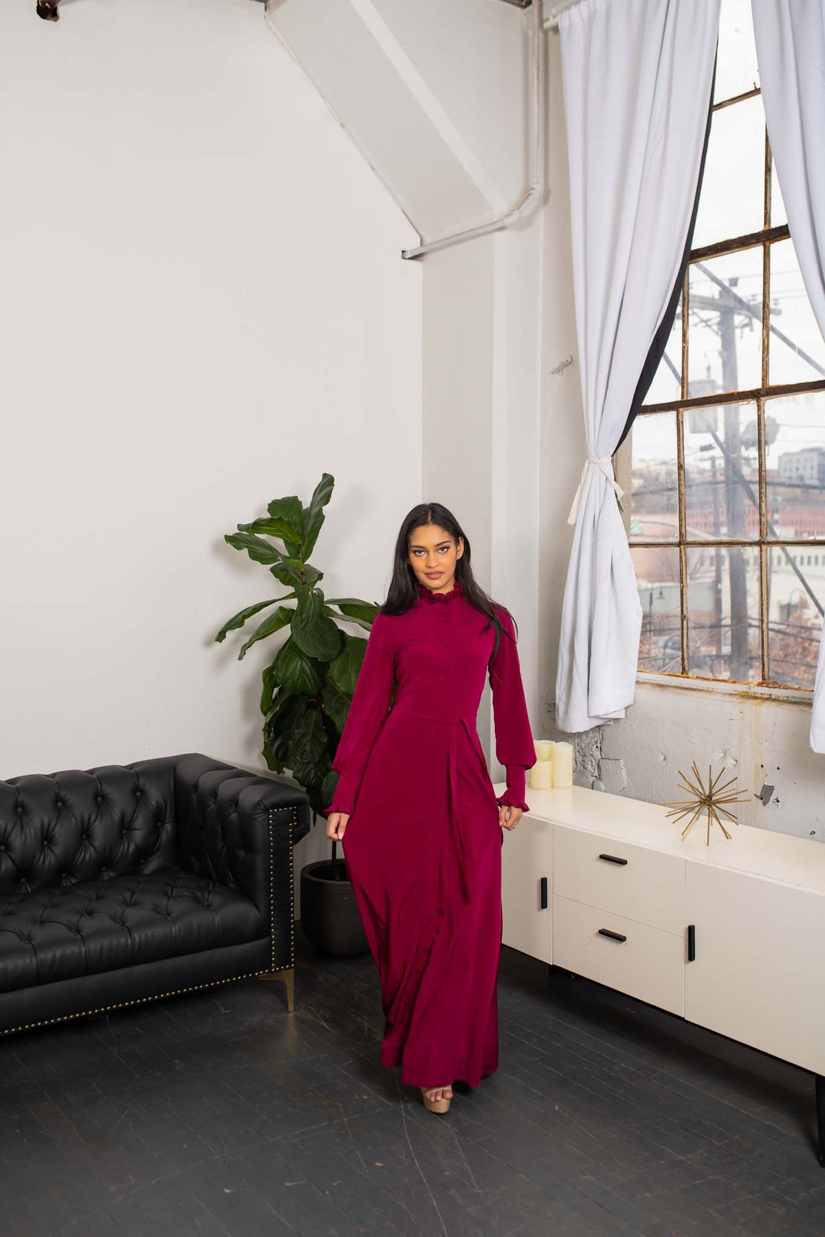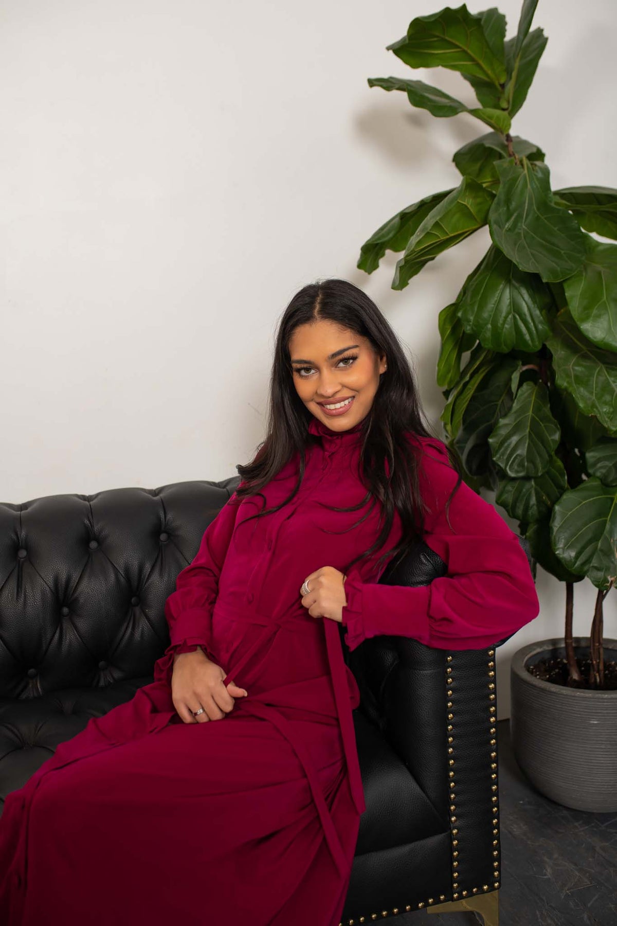 Introducing this classic dress that fits any occasion. Whether you are lounging with friends or in a ceremony, or even at an event, this is the go to dress. By unbuttoning this dress and wrapping the belt around your waist, it will turn into a stylish cardigan. It is a versatile wear indeed.